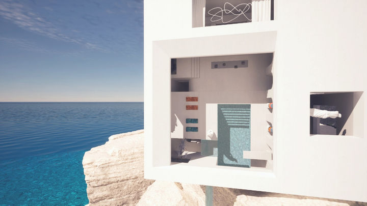 Within this metaverse environment, architecture, nature, and human interaction merge into a singular, fluid realm. Our studio guided the conceptual development, investigating how formal minimalism, poetic objects, and the interplay of interior and exterior spaces could be reinterpreted digitally. The design invites exploration of novel spatial relationships, where boundaries between indoors and outdoors, physical and metaphysical, are playfully redefined.
